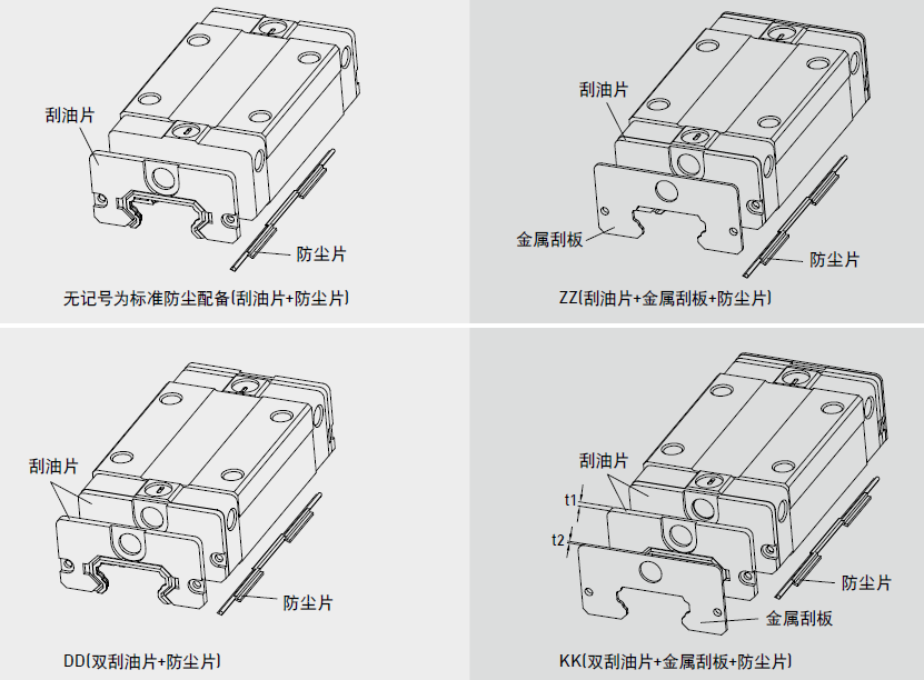阻止加工鐵屑或塵粒進入滑塊里面,破壞珠道表面而降低直線導(dǎo)軌壽命。