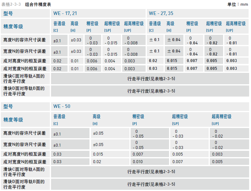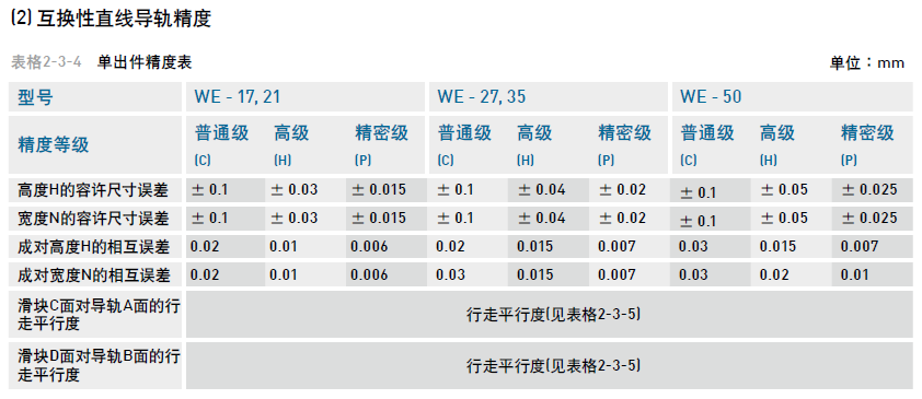 寬幅型滾珠直線導軌WE系列精度等級