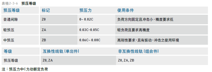 WE 系列直線導軌提供三種標準預壓,可依據(jù)用途選擇適當預壓力。