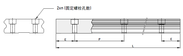 HIWIN 備有導軌標準長度庫存供應客戶需求。若客戶訂購非標準長度導軌時,端面距離E的尺寸最好不要大于1/2P,防止因E的尺寸過大導致導軌裝配后端部的不穩定,而降低直線導軌的精度。