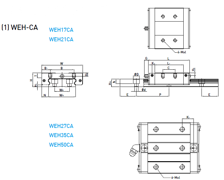 直線導軌寬幅型直線導軌WE系列尺寸表