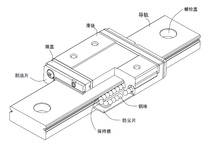 ? 滾動循環系統:滑塊、導軌、端蓋、鋼珠、保持器