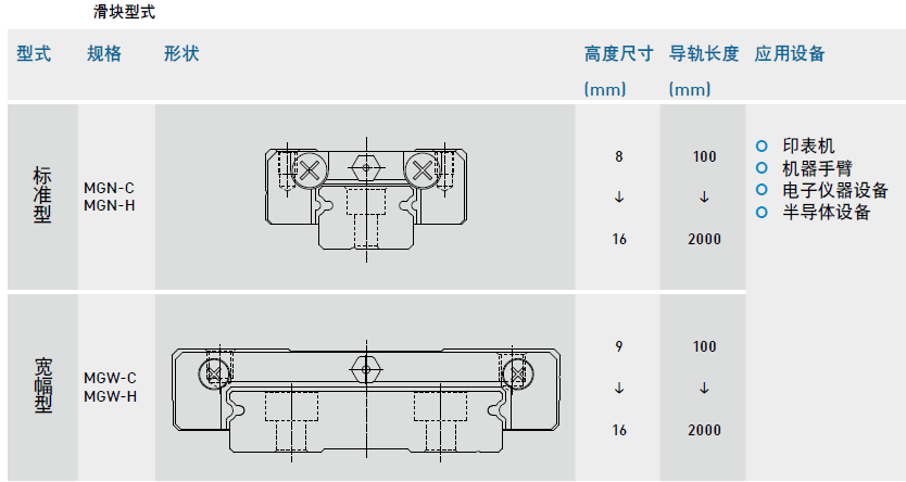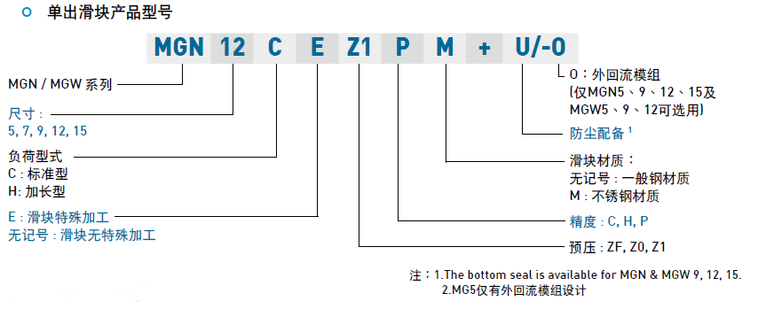 微型直線導軌MG系列的命名規則及型號