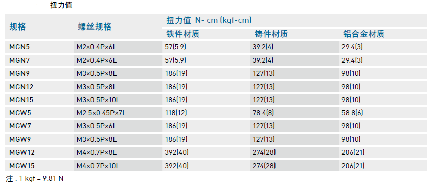 導軌裝配螺絲之扭力值