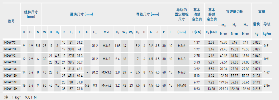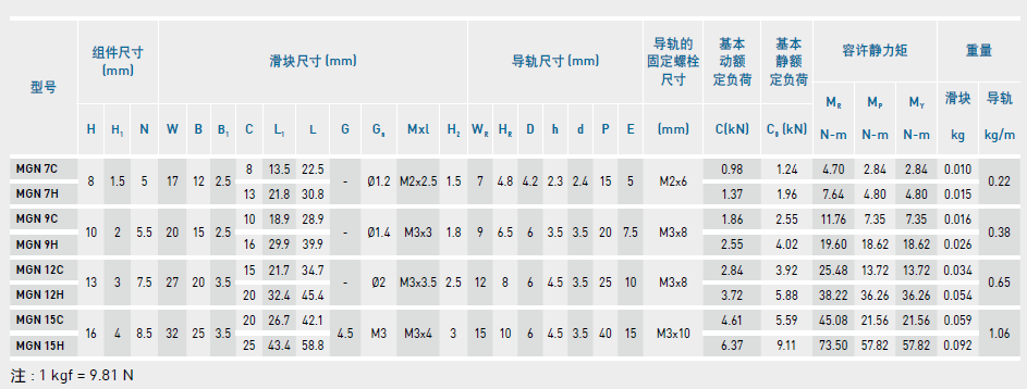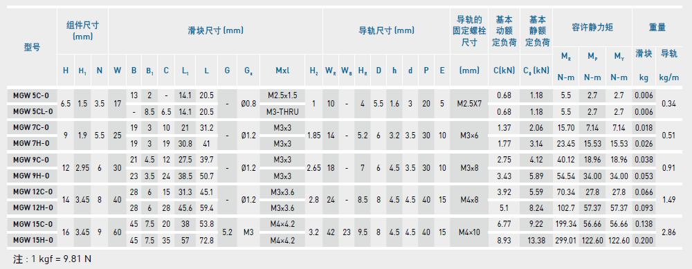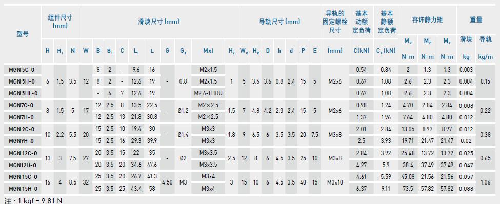 微型直線導軌尺寸表介紹及尺寸表對照