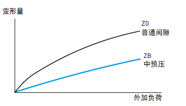 預壓力是預先給與鋼珠負荷力,亦即加大鋼珠直徑,利用鋼珠與珠道之間負向間隙給與預壓,此舉能提高直線導軌的剛性及消除間隙;以上圖來解釋,提高預壓力可增加直線導軌剛性。但小規格建議選用輕預壓以下預壓,以避免因預壓選用過重降